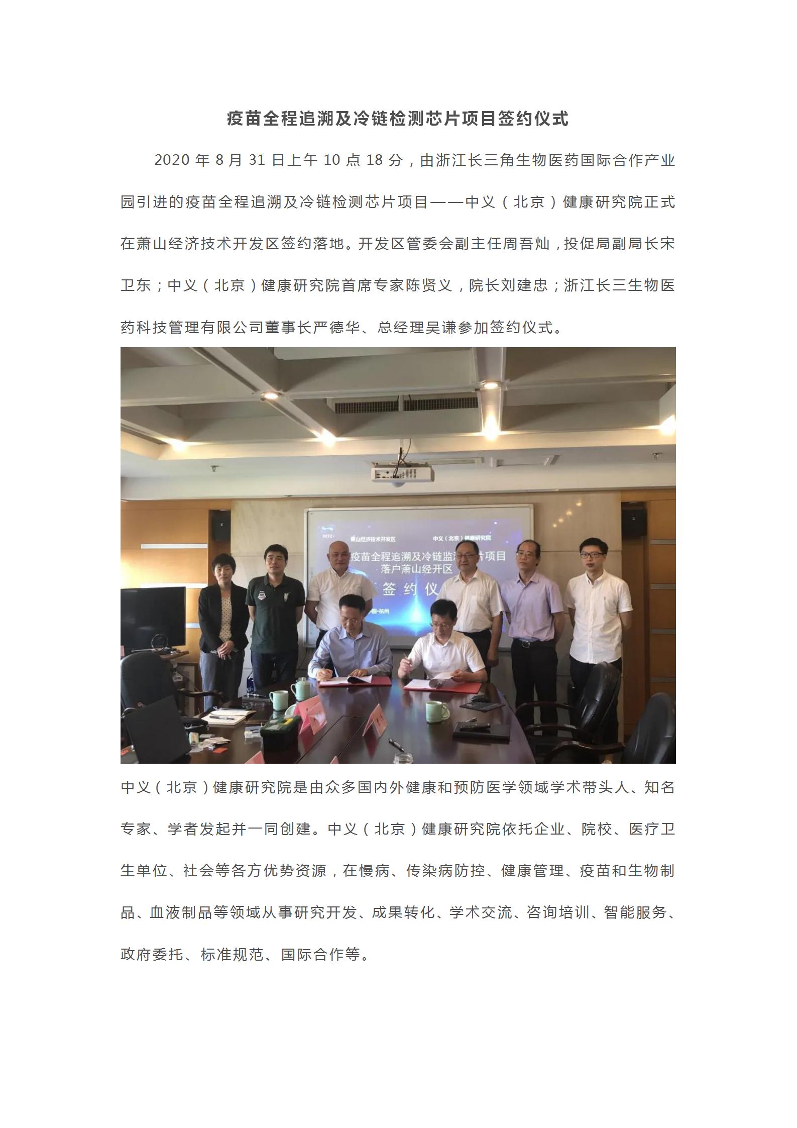 疫苗全程追溯及冷鏈檢測芯片項目簽約儀式